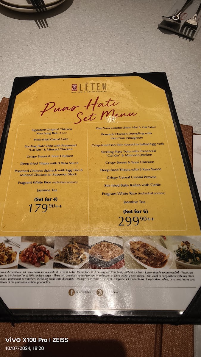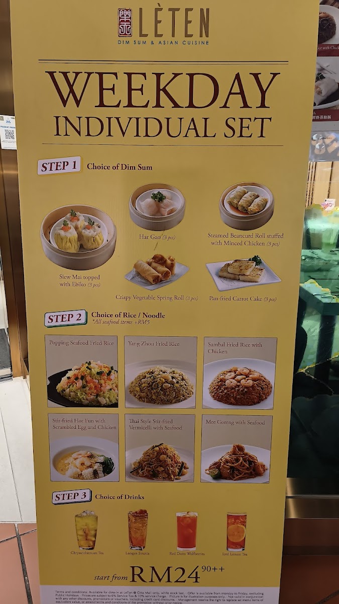 Vegetable lovers can indulge in the Stir-Fried KangKong or the distinctive Poached Chinese Spinach, while seafood enthusiasts will delight in the Crispy Cereal Crystal Prawn and Szechuan KungPao Squid. With a comfortable ambiance and attentive service, LèTen is not only a feast for the taste buds but also a pleasant dining experience. With weekday discounts and a variety of menu options, it’s a must-visit for dim sum fans seeking halal delights.